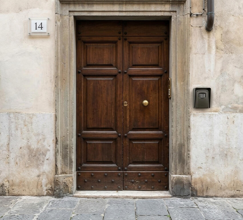14 di Via dei Glicini. Alla destra del portone Γ¨ installata una cassetta di sicurezza grigia con tastierino numerico.Inserite il codice fornito per aprire. prendete solo le chiavi dal