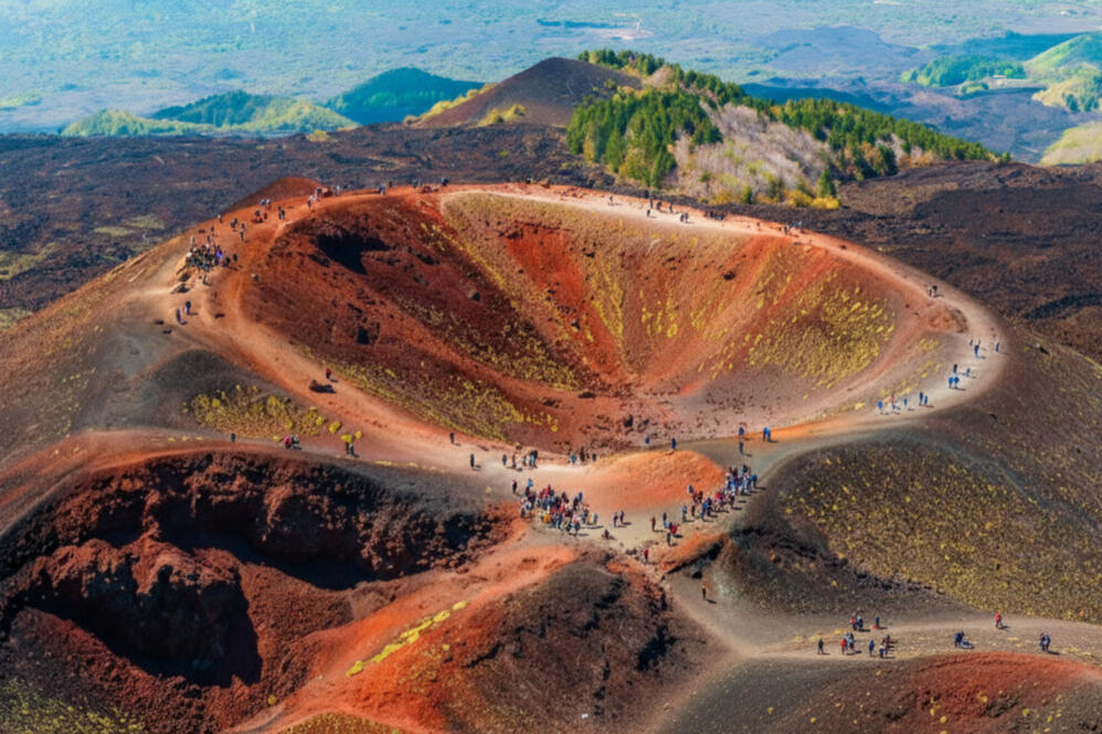 pick-up, tasting of typical Etna products, and visits to a cave and extinct craters.
