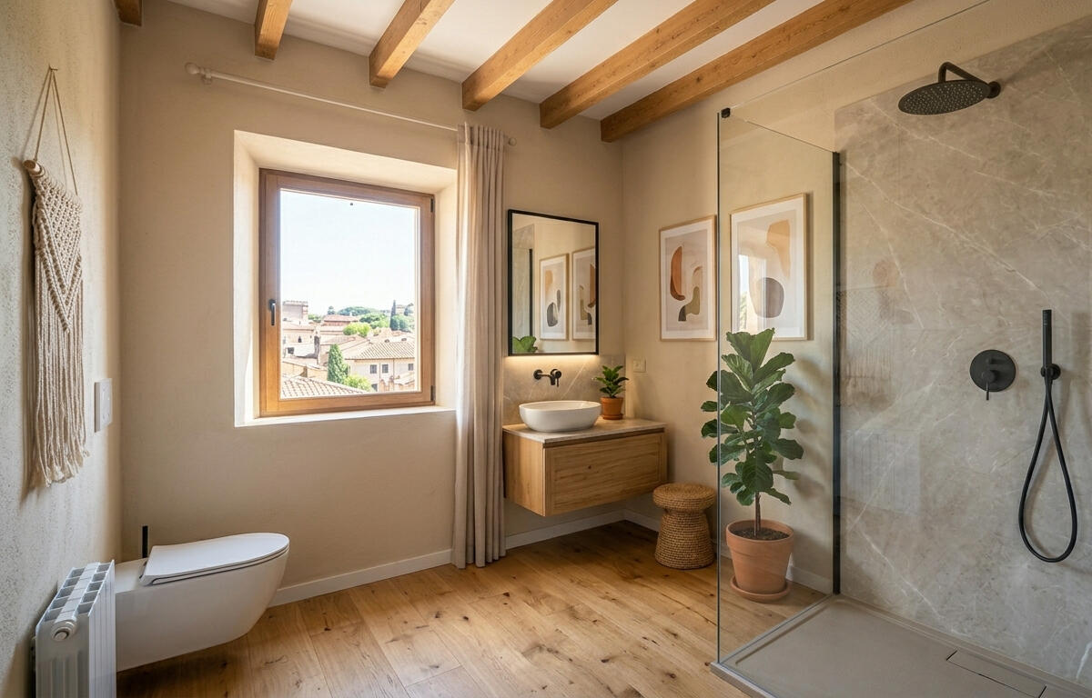 This spacious bedroom, ideal for couples, stands out for its natural light thanks to the large French door leading to a private balcony with a view of the greenery. The environment is welcoming and comfortable, with a large double bed, two nightstands with lamps, plants adding a touch of nature, and a relaxing atmosphere.Regarding the amenities offered, guests will find clean linens and bed sheets, a refreshment area with a coffee machine, snacks, and a kettle for preparing hot drinks, and a modern and functional private bathroom.